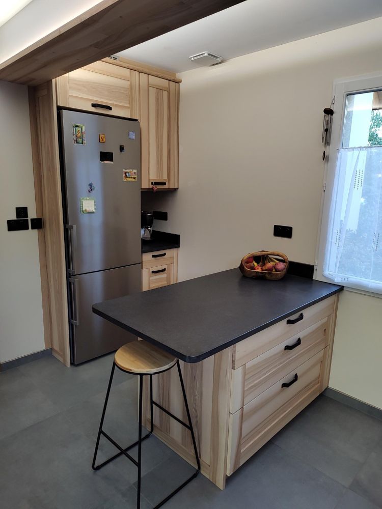 Situés à Saint-Étienne-lès-Remiremont, dans les Vosges, nous sommes spécialisés dans la création de cuisines sur mesure en frêne olivier, un bois au grain unique et aux nuances chaleureuses, parfait pour un espace de vie à la fois raffiné et accueillant.